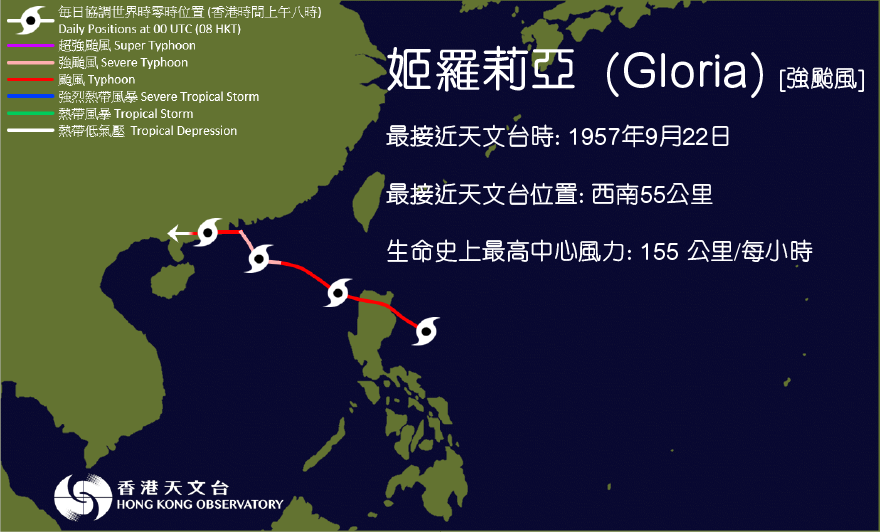 1957年9月,颱風姬羅莉亞襲擊香港,帶來強風、暴雨和風暴潮,造成超過30人死亡、數百人受傷,沿海地區嚴重淹水,房屋和船隻受損嚴重,是香港歷史上重要的風災之一。