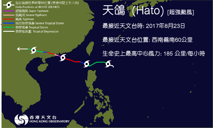 第 7 位 : 天鴿 Hato (風力 185 km/hr)