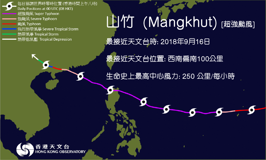 第 1 位 : 山竹 Mangkhut (風力 250 km/hr)