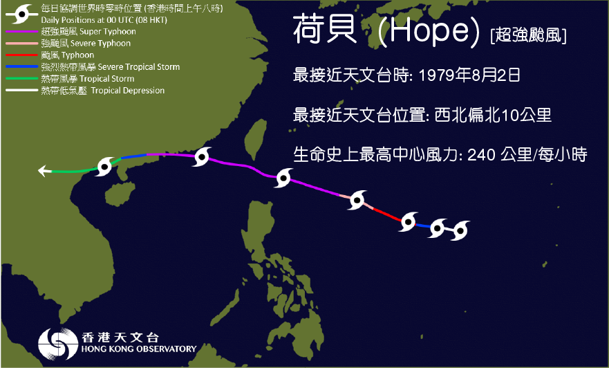 第 2 位 : 荷貝 Hope (風力 240 km/hr)